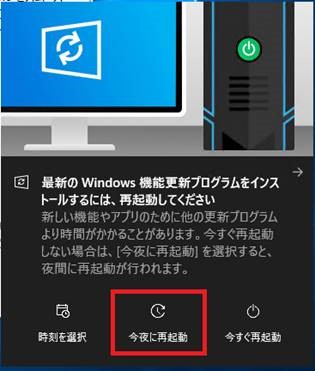 上記通知では「今夜に再起動」というボタンが存在しておりますが、実際に動作を確認したところ、必ずしもその日の夜に再起動が実行される動作とならないことを確認しております。