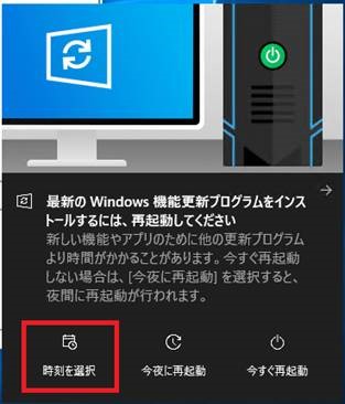 そのため、その日の夜に再起動をご実施いただくよう制御いただく場合には、「今夜に再起動」ボタンではなく「時刻を選択」ボタンより再起動の日時をスケジュールしていただく運用をご検討ください。