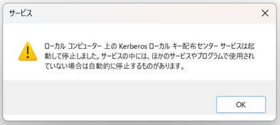 ローカル コンピューター 上の Kerberos ローカル キー配布センター サービスは起動して停止しました。サービスの中には、ほかのサービスやプログラムで仕様されていない場合は自動的に停止するものがあります。