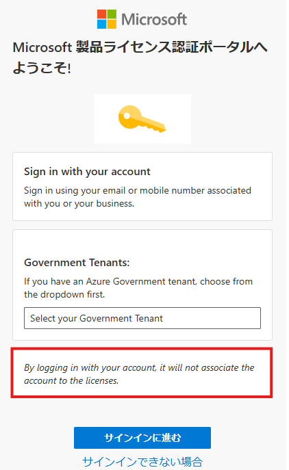 ※ライセンスとアカウントの紐づけは行われません。セキュリティ観点でサインインが必須となっておりますが、任意のアカウントをご使用いただければ問題ございません。