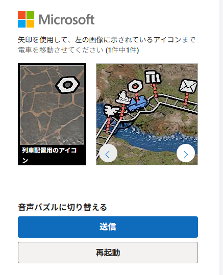 - 画面の指示に従い、右側画面の矢印キーで列車を指定のアイコンまで移動させて [送信] をクリックします。