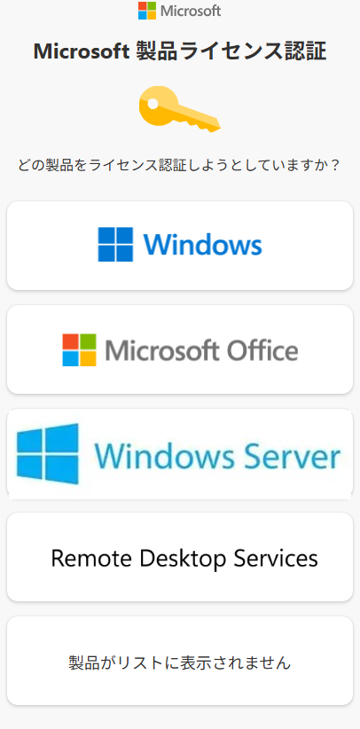 [どの製品をライセンス認証しようとしていますか?] の画面で対象の製品 ([Windows] もしくは [Windows Server]) を選択します。