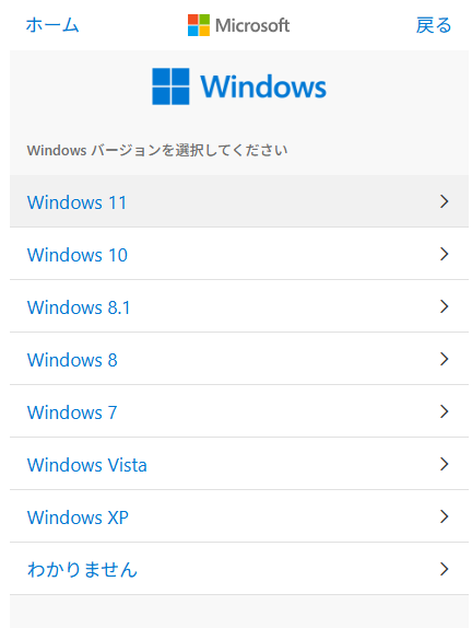 - 次の画面で OS バージョンを選択します (下記画像は [Windows] を選択した際の例)。
