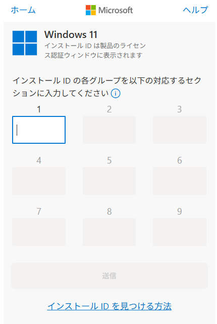 - インストール ID 入力画面が表示されましたら、”事前準備” の項番 3 で確認したインストール ID を入力し [送信] を押します。