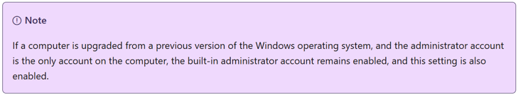 前述の公開情報においても Best practices として記載のとおり、ビルトイン Administrator を常用することは推奨しておらず、利用される場合は本ポリシーを有効としていただくようにご案内しております。